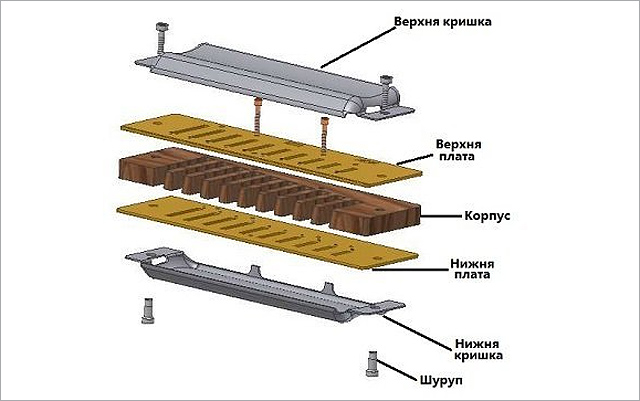 Товщина плат 0.9 мм. Вони, як і язички, виготовлені з латуні. Тому, гармошка Silver Star має яскравий та приємний звук.