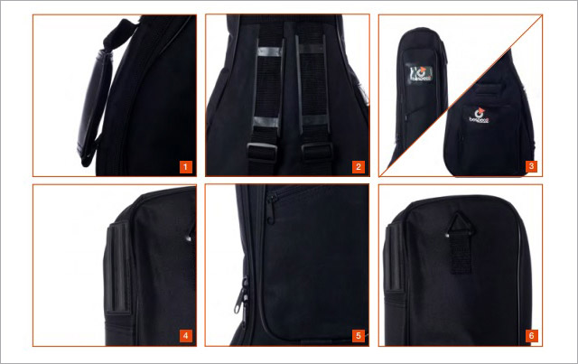 Чохол для класичної гітари BAG300CG, серія Virtuoso Line, виготовлений з міцного нейлону "Oxford cloth 600D" з посиленими за допомогою ПВХ швами. Товщина утеплювача становить 25 мм. Для аксесуарів передбачені 2 великі кишені, зверху і знизу. Бічна ручка для перенесення оснащена м'якою накладкою, є зручні регульовані наплічні ремені. Ззаду чохла є спеціальна петля для підвішування. Внутрішня частина чохла посилена для захисту струн і бриджу. По краях встановлені гумові протиударні накладки.