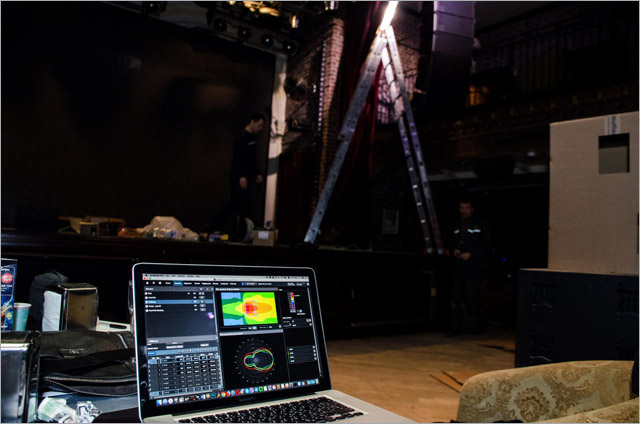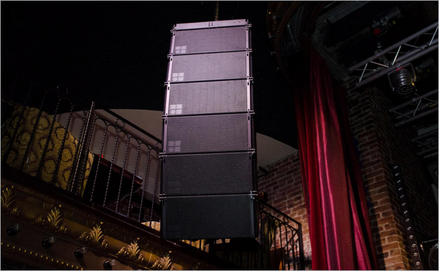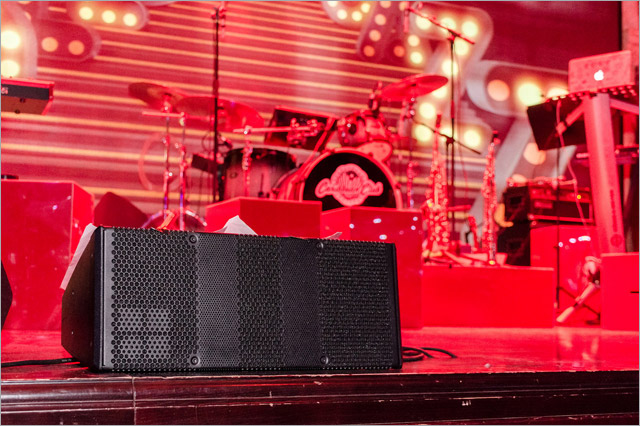 - По-перше, більш рівномірне покриття залу. 6 топів лінійного масиву, дозволили точно сфокусувати звук у потрібних зонах і забезпечити комфорт у всіх точках залу. При цьому в якості нижніх топів використовується модель V12 з кутом розкриття 120 градусів, щоб максимально охопити партер. Верхні V8 мають більш вузький кут у 80 градусів, але більшу «далекобійність», щоб забезпечити прекрасне звучання до кінця балкона.