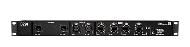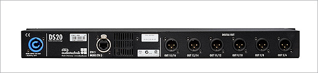 Пристрій формату 1U, розташовується в сигнальному ланцюзі перед підсилювачами й однаково підходить як для мобільних застосувань, так і для інсталяцій. Поряд із забезпеченням взаємодії Ethernet-аудіо мережі MILAN із цифровими AES3 входами підсилювачів d&b, DS20 надає 2 цифрових входи AES3 (4 аудіо канали), тобто можливість використання розриву для підключення, наприклад – FOH консолі.