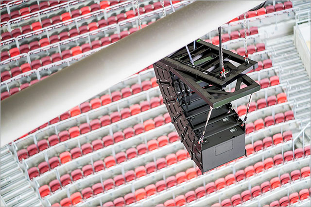 На сьогодні це найсучасніший технологічний стадіон в Центральній Європі. Трибуна, що містить більше 67000 місць, розділена на 175 зон, використовується 32 підвісних стека лінійного масиву d&b V-Series у всепогодному (WR) та стадіонному (SVS) виконанні.
