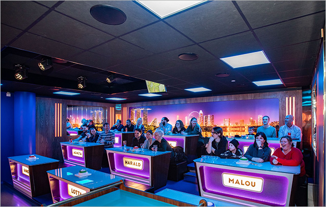 Цікавий бар в стилі ігрового TV-шоу був відкритий в розважальному комплексі в Швеції. При конструюванні такого закладу потрібно продумати акустику, яка дозволить конкурсантам чітко чути усі питання. Для цього інсталятори тісно співпрацювали з телемовниками в Швеції.