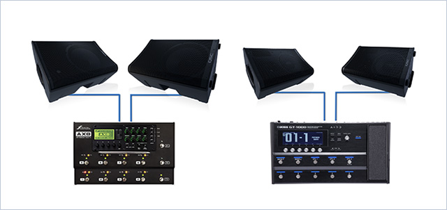 Більшість моделюючих гітарних процесорів мають стереовиходи, які можна безпосередньо підключити до пари систем CP та використовувати їх у якості FRFR гучномовців, які забезпечують високу якість відтворення звучання змодельованих гітарних підсилювачів. Крім того, вихід «Mix» в системах CP (XLR вихід після попереднього підсилення) може використовуватися для надсилання ваших лівого та правого каналів безпосередньо до головної мікшерної консолі.