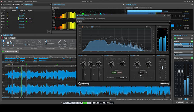 WaveLab Cast підтримує якість аудіо до 96КГц та передбачає високоякісний ресемплер. RestoreRig прибирає шум та небажані звуки. Ви можете збирати нові файли за допомогою функції прив`язки та можливостей кросфейду. Завершивши, експортуйте свої звукові файли у будь-який популярний аудіоформат.