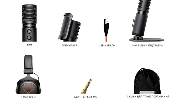 Комплект: навушники TYGR 300 R (відкриті) та студійний USB-мікрофон FOX
