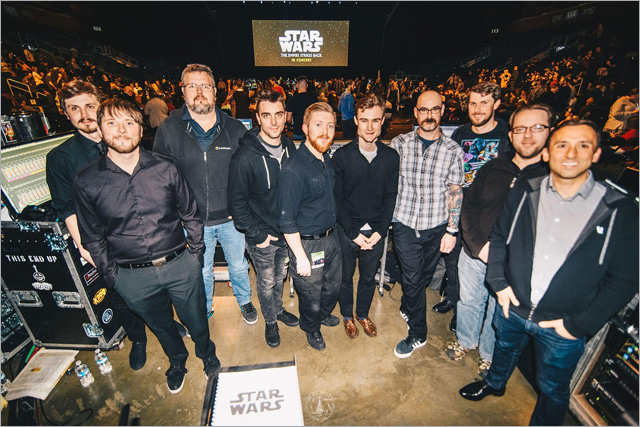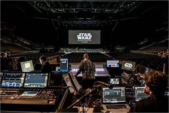 Займаючись мікшуванням шоу на новій мікшерній консолі оркестру, оснащеній Quantum, – DiGiCo SD7 для FOH, Крістенсен мав у своєму розпорядженні 85 музикантів, кожен з індивідуальним мікрофоном для максимального співвідношення gain-before-feedback та ізоляції. До цих входів було додано три сети стереовходів для діалогів, звукових ефектів та додаткових ефектів — включно з «голосами» Chewbacca та R2-D2. Окрім того, використовувався зовнішній юніт мастерстереореверберації для надання струнним і дерев’яним духовим інструментам «відчуття концерт-холу на арені», – продовжує він.
