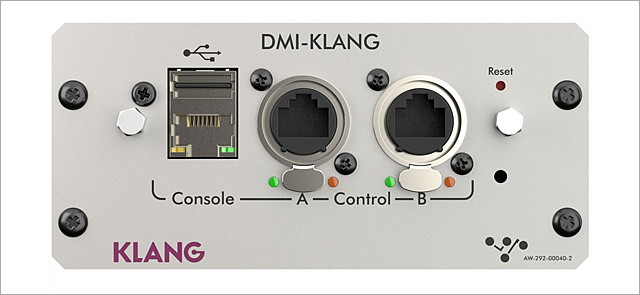 Нова карта DMI-KLANG, яку можна встановити безпосередньо на консоль DiGiCo, оснащену слотами DMI, пропонує новітні можливості імерсивного мікшування персональних вушних моніторів. Технологія KLANG:Fabrik набуває дедалі більшого поширення і в найближчому майбутньому має стати стандартом, витіснивши традиційне стерео.
