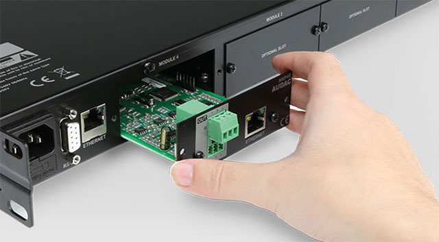Вбудований слот для модулів SourceCon™ пропонує по-справжньому комплексне рішення. Типовими додатками є реалізація модуля потокового аудіо або модуля інтернет-радіо.