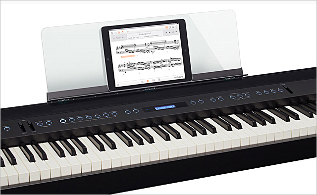 - Комутація зі смартфоном або планшетом по бездротовому каналу Bluetooth і гра під супровід улюблених п’єс, які відтворюються через вбудовану аудіосистему інструменту.