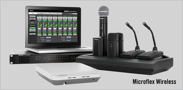 Особливої уваги заслуговує Shure Microflex Wireless з технологією DECT для AV-середовищ. Безпровідна система Microflex Wireless забезпечує елегантні рішення для отримання чіткого реалістичного звучання. У першу чергу в самих різних умовах проведення AV-конференцій — від спеціалізованих залів засідань до мереж масштабу підприємства. Система працює на програмному забезпеченні MXW, шифруванням AES-256 для забезпечення безпеки і підтримки цифрового мережевого аудіопротоколу Dante.