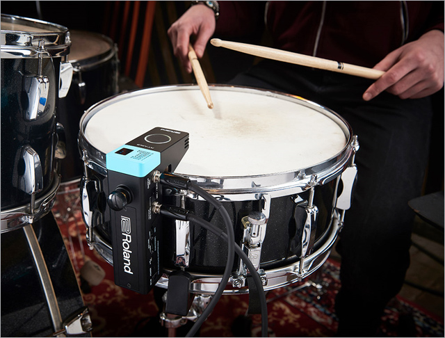 Зазвичай, згідно стверджень музикантів, кожен барабанщик постійно в пошуку свого унікального звучання. Новий модуль RT-MicS від Roland пропонує просте рішення цієї проблеми. Компактний та портативний пристрій надає можливість барабанщику накладати звуки один на одного. А відтворити вісім тембрів запрограмованих виробником дуже просто — достатньо вдарити по барабану, до якого прикріплений модуль. При цьому разом з акустичним звуком відтворюється обраний вами електронний. Накладення звуків — ось що дійсно цікаво. При одному ударі відтворюється як семплірований тембр, так і чисто акустичний звук. Можна, наприклад, «посилити» звук малого барабану. Тобто, створити мікс зі знайомого щиглика акустичного інструменту з додатковим тембром малого барабану. Або накласти тамбурин на малий барабан для виділення слабких долей такту та багато інших нескінченних варіацій.