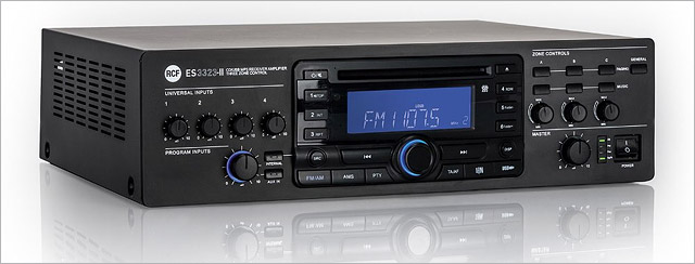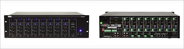 Для посилення аудіо-сигналу, кожної з 8 зон обрані інсталяційні підсилювачі Lab.gruppen Е-Series: Е12:2/Е8:2/Е4:2. Підсилювачі Е-Series — це висока ефективність, якість та надійність гарантована Lab.gruppen. Але головна відмінність — екологічність і ультракомпактні розміри. Від підсилювачів Е-Series звук надходить на трансляційні гучномовці компанії RCF серії PL і MD. Регулювання рівня гучності одного з 8 джерел сигналу в кожній зоні, відповідає встановлений пульт дистанційного керування Proel R88 або Proel R88L. Пульт дистанційного керування Proel R88L має мікрофонний XLR і лінійний RCA входи з регулюванням рівня.