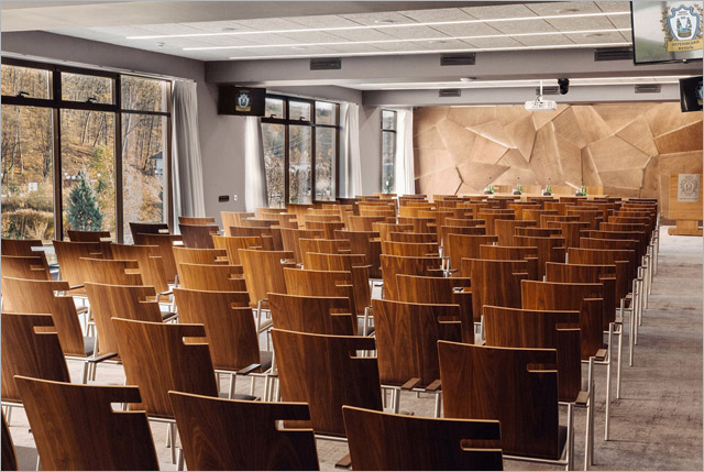 - Конференц-система з системою синхронного перекладу (дві мови).