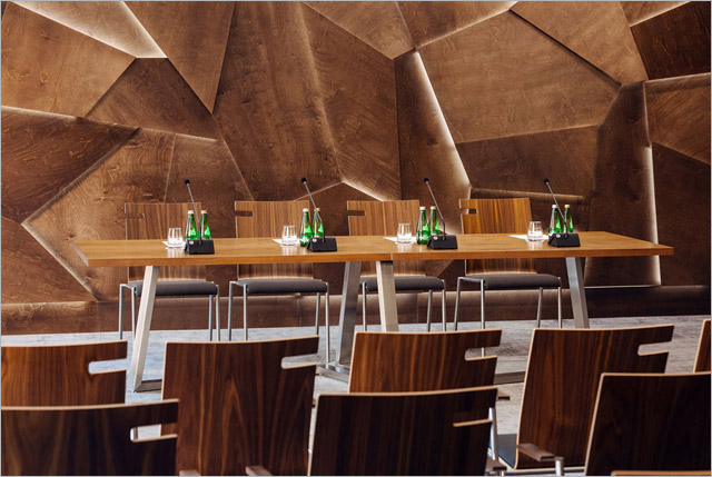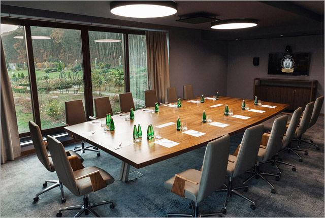 Комфортна зала переговорів у санаторному комплексі «Деренівська купіль», якнайкраще підходить для досягнення відповідної атмосфери в процесі ділового спілкування. В переговорній кімнаті призначаються зустрічі з клієнтами або партнерами, проводять корпоративні засідання, презентації, навчання та співбесіди. Дана сучасна зала, була оснащена системами візуального та звукового транслювання. Перш за все, обладнанням для проведення відео/аудіо конференцій, а також обладнанням для протоколювання і запису обговорення.