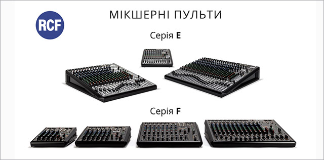 Стенд RCF на виставці NAMM Show 2019, став стартовим майданчиком для компактної цифрової мікшерної консолі M 20X. Новинка включає в себе моторизовані фейдери, багатодоріжковий запис, дистанційне керування WiFi, мультирежимний PEQ. Крім того, присутні багато інших технології, які розроблені безпосередньо на відомій платформі мікшування M 18. Сімейство мікшерних консолей RCF представляє мікшери серії E та F. Серія F складється з чотирьох консолей від шести до 16 каналів, які пропонують мульти-FX, компресори з одним управлінням і можливості запису на USB.