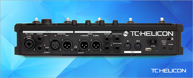 Поглиблене налаштування ефектів доступне, коли у вас є час для експерименту, але коли ви на сцені, можете бути впевнені, що все представлено якомога простіше, з сенсорною панеллю, що забезпечує швидкий доступ до функцій процесора. Кнопка tap-tempo забезпечує швидку синхронізацію ефекту затримки і залежних від темпу ефектів до живих ударів. Також доступні функції метронома і гітарного тюнера. Всі основні з’єднання знаходяться на задній панелі. Можливо буде незручно отримати доступ до задньої панелі, коли пристрій встановлений на мікрофонну стійку, тому краще підключити процесор перед тим, як встановлювати на стійку. Живлення надходить від обов’язкового зовнішнього блоку, а на правій стороні корпусу є роз’єм для підключення навушників.