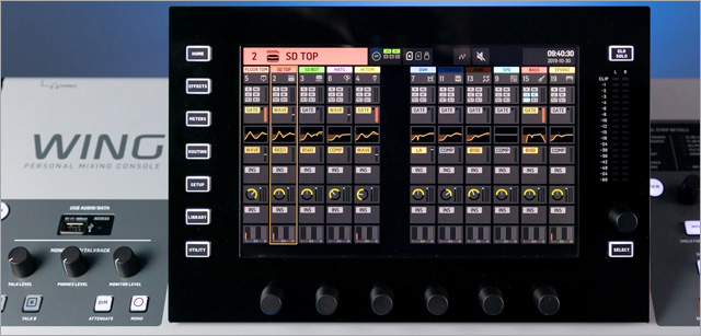 Найважливіші елементи й процеси у роботі Behringer Wing відображаються на 10-дюймовому сенсорному екрані. Ліворуч від нього розташовано 7 клавіш, які використовуються для доступу до різних типів дисплея.