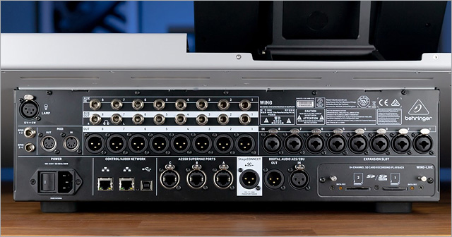 Нарешті, Behringer Wing, маючи технологію Stage CONNECT, підтримує з'єднання для передачі до 32 аудіо-каналів через стандартні кабелі XLR і DMX. Інтерфейс підтримує різні конфігурації шин вхідних і вихідних каналів і використовує цифровий, незжатий PCM з 44.1/48 кГц і 24-бітним дозволом. Stage CONNECT розроблений для гнучких з'єднань на сцені при використанні стандартних мікрофонних кабелів, які підтримують широку лінійку стейдж-боксів і моніторингових систем із затримкою менш ніж мілісекунда. Стерео входи й виходи AES/EBU підключаються через кабелі XLR.