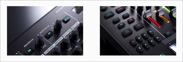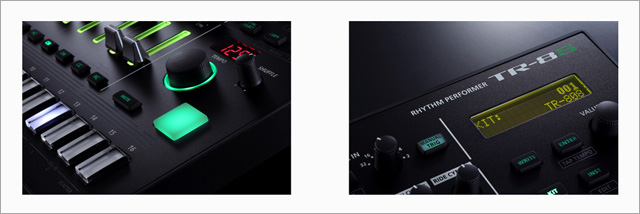 Для живого виконання або запису в секвенсер можна використовувати як 16 кнопок TR-REC, так і чутливі до швидкості удару педи. Ви можете миттєво перемикатися між ними як при грі, так і під час редагування та налаштовувати треки ударних, не перериваючи самого процесу. Можна створювати груви і деталізовані «збивання» з використанням швидкості удару для отримання сучасних ефектів. Цікаві результати виходять, якщо поекспериментувати з нестандартною поліритмією і складними розмірами, змінюючи параметри довжини або положення останнього кроку партій ударних.