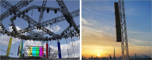 Затримки були застосовані на сабвуферах для компенсації дистанції між ними й верхніми кластерами, а система була настроєна таким чином, щоб забезпечити рівномірне звучання навіть при дуже високому SPL: у середньому в приміщенні реєструвався рівень 132 дБ при роботі системи на номінальній потужності.