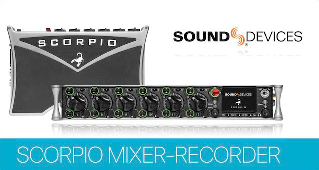 Scorpio – це 32-канальний, 36-трековий мікшер-рекордер. Цей пристрій є самим потужним продуктом компанії Sound Devices, в розробці якого використовувалися найпередовіші технології. Три схеми FPGA та шість ARM процесорів забезпечують потужність, необхідну для виконання найскладніших завдань. 16 мікрофонних підсилювачів, 32 входи і виходи Dante, вхід і вихід AES, 12 аналогових виходів і кілька виходів для навушників.