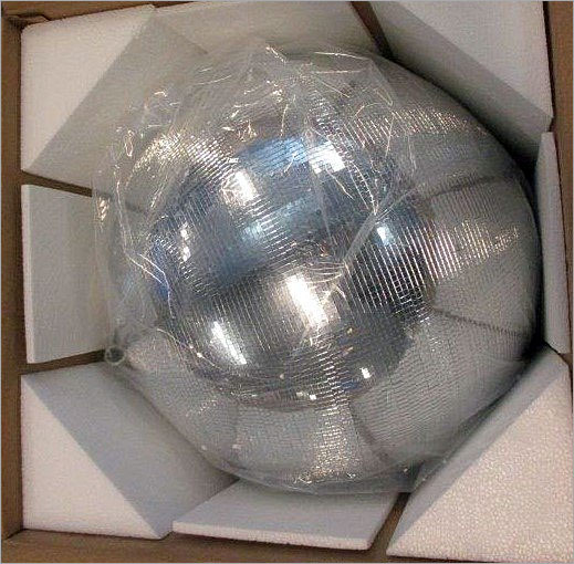 - Дзеркальна куля Mirrorball 50cm 5x5mm mirrors – великогабаритна версія диско-кулі діаметром 500 мм. Куля обладнана кільцем для підвісу і страхувальним кільцем.