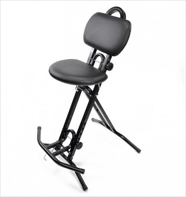 Зручний і стабільний стілець для гітариста з багатоступеневою регулюванням підставки для ніг і сидіння. Додаткова функція в цій новинці - можливість установки гітарної ручки. Відмінна якість і простота регулювання, яка забезпечує такий універсальний у використанні стільчик для музиканта. Модель дуже стильно виглядає, до того ж зручно, швидко і легко складається для транспортування.