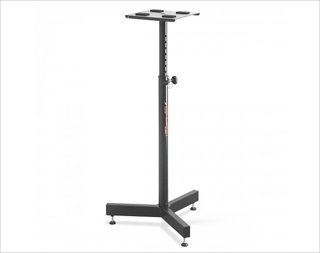 Професійна підставка для монітора з повною регулюванням по висоті. Стійка оснащена регульованими гумовими ніжками і шипами, що дозволяє легко підлаштовувати підставку до кожного типу поверхні, через прогумованих наконечників, вона не буде ковзати навіть на плитці, що забезпечує додаткову безпеку дорогому обладнанню.
