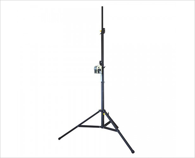 Стійка для важкого світлового обладнання з посиленою сталевої навантаженням і вантажопідйомністю до 80 кг. Встановлений замок захищає і надійно фіксує обладнання від неконтрольованого падіння і пошкодження. Цей штатив - відмінне рішення для діджеїв і музикантів, яким доводиться виступати і багато їздити, возячи за собою все своє обладнання, стійка легко складається і поміщається в транспортувальну сумку.