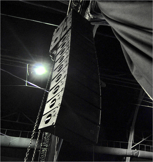 В якості основної портальної системи був обраний універсальний лінійний масив MAG WASP. Масив легко масштабується: змінюючи кількість модулів, можна домогтися рівного звучання для майданчика будь-якого розміру. Цього разу для зали завдовжки 40 метрів знадобилося по 9 модулів на сторону.