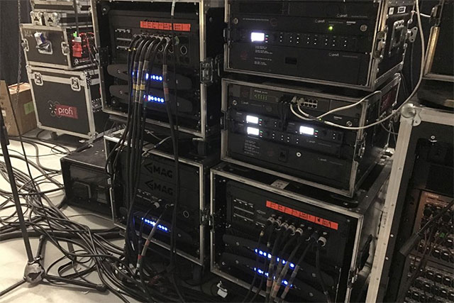 З кожного боку встановили по 4 х MAG Sub H28.Також поставили по два модуля MAG WASP як фронт-філи і 2 x MAG Focus 5 для моніторингу на сцені. І, нарешті, ми використали 9 x MAG STING як системи оточення: по три з правого і лівого боку і ще три біля задньої стіни. Вся звукова система була підключена до двох MAG AmpRack 2x8 і одному MAG AmpRack 1x8.