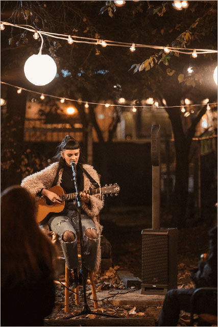 Чи існує кращий спосіб танцювати при місячному світлі, ніж організувати танцювальний майданчик прямо під відкритим небом. Портативна система звукопідсилення JBL EON ONE PRO дає 118 дБ потужності, а завдяки 6-годинному ресурсу акумулятора дозволяє вечірці тривати цілу ніч. Потребуєте більше потужності або ширшого покриття? Просто підключіть декілька пристроїв через технологію passthru. Якщо ви передаєте аудіосигнал через Bluetooth, подумайте про використання чотирьох одиниць JBL EON ONE Compact, які можна легко зв`язати між собою завдяки мобільному додатку.