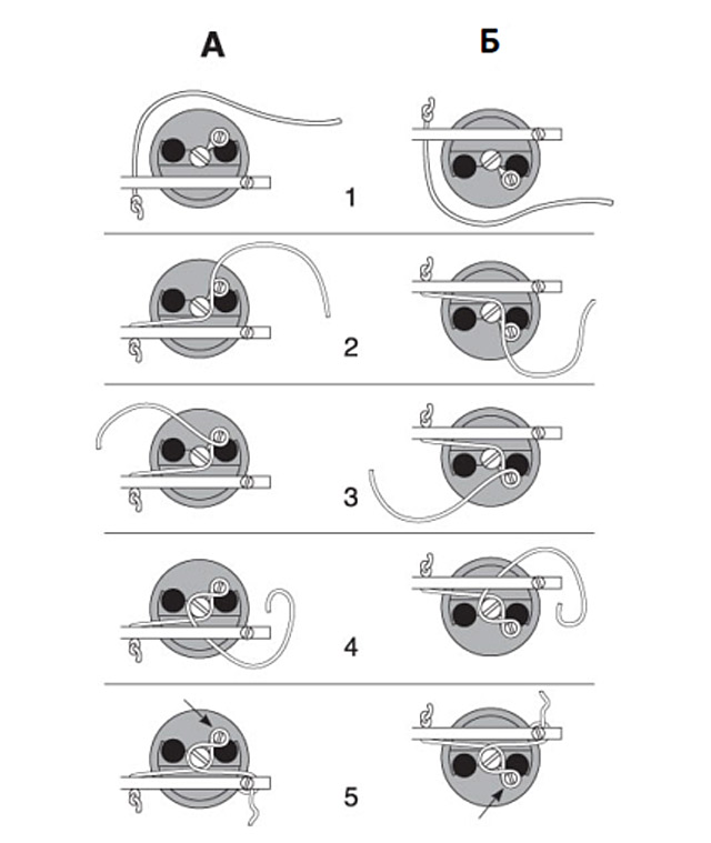 - Протягніть вільний кінчик частково навколо втулки підшипника (проти годинникової стрілки для варіанту A, за годинниковою стрілкою для варіанта Б), послабивши фіксуючий ґвинт на вентилі так, щоб пристосувати шнур.