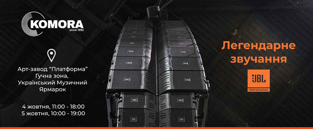Вже понад 27 років підприємство «Комора» надає комплексні послуги, що робить компанію унікальною у сфері професійного звукового та світлового забезпечення. Цього року під час Українського Музичного Ярмарку «Комора» продемонструє звучання передової акустичної системи – лінійного масиву JBL VTX V25II, JBL VTX V20 та JBL VTX G28 – у гучній зоні.