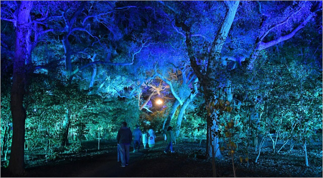 Descanso Gardens – ботанічний сад на 60 гектарів, розташований в Ла-Каньяді, штат Каліфорнія, за кілька кілометрів від центру Лос-Анджелеса. «Зачарований ліс», який дебютував минулого року як перше подібне шоу на Західному узбережжі, – це 2-кілометрова нічна прогулянка через барвисті та сліпучі освітлювальні екрани. Нічна подія занурює гостей у красу садів через світло, звук та музику. Поєднання мистецтва та природи, інтерактивні дисплеї та динамічне світло заохочують гостей спілкуватися з природою та проводити більше часу у відпочинковій зоні.