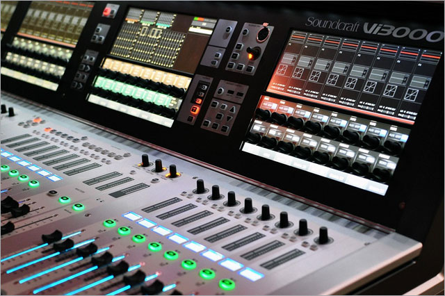 Мікшерні пульти Vi2000 були розташовані у FOH-позиції та для моніторингу в театральному залі. Ця модель була обрана за універсальність варіантів маршрутизації та інтуїтивно зрозумілий інтерфейс. Консолі Vi2000 поєднують унікальну робочу поверхню на базі сенсорного інтерфейсу Vistonics з сигнальним процесором Soundcraft® SpiderCore. Консоль Vi2000 містить ряд корисних інструментів, які дозволяють зекономити час. Серед них, автоматичне міксування мікрофонного сигналу vMIX, динамічний еквалайзер BSS DPR901ii та ефекти Lexicon.