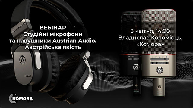 Запрошуємо вас взяти участь у вебінарі «Студійні мікрофони та навушники Austrian Audio. Австрійська якість», що відбудеться 3 квітня (п’ятниця) о 14:00.
