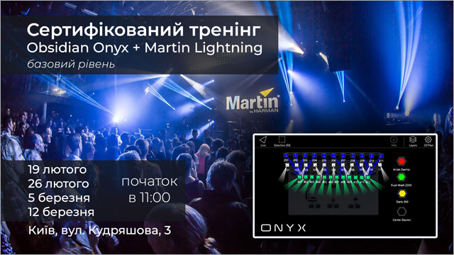 12 березня запрошуємо на IV етап сертифікованого тренінгу «Комори» для режисерів по світлу та всіх, хто хотів би дізнатися більше про створення професійних світлових шоу на топовому обладнанні Obsidian, Martin Lightning та ПЗ Onyx.