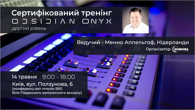 14 травня запрошуємо на сертифікований тренінг з підвищення кваліфікації режисерів та художників по світлу та всіх охочих. Про широкі можливості створення професійних світлових шоу на топовому обладнанні Obsidian, Martin Professional та ПЗ Onyx розповість спеціаліст з розвитку ObsidianМенно Аппельгоф (компанія Elation Professional, Нідерланди).