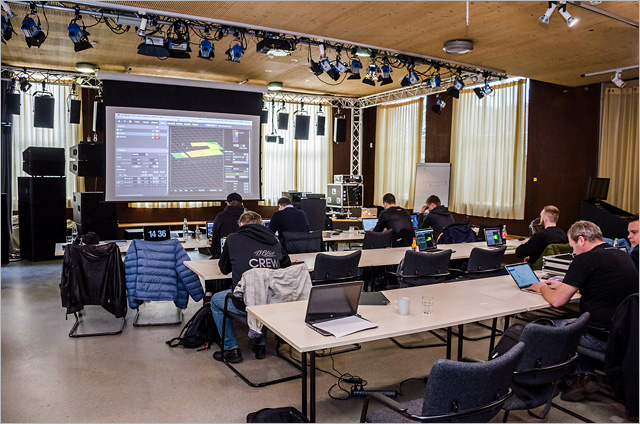 Після цього, на наочних прикладах, була глибоко вивчена фірмова програма d&b Array Сalc, проектування інсталяцій і постановок з її допомогою, а також програма d&b R1, що дозволяє готові проекти з усіма характеристиками заливати прямо у процесінговую частину підсилювачів d&b audiotechnik і добиватися досконалого звучання, ще більш тонким настроюванням DSP.