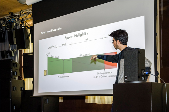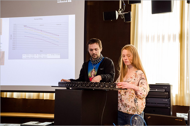 Далі теоретичні лекції, на яких були пройдені ази електроакустики, основи побудови лінійних і сабвуферних масивів з наочною демонстрацією фізичних принципів взаємодії акустичних хвиль на практиці. Багато графіків, таблиць і прослуховувань.