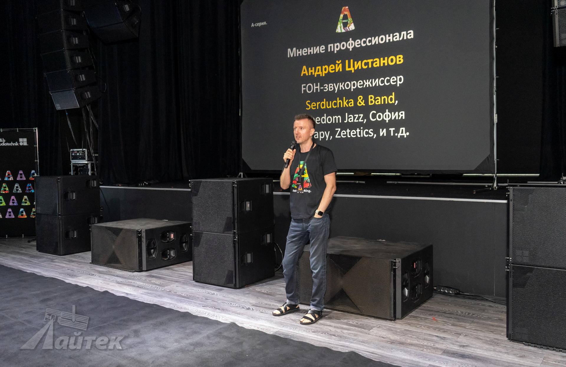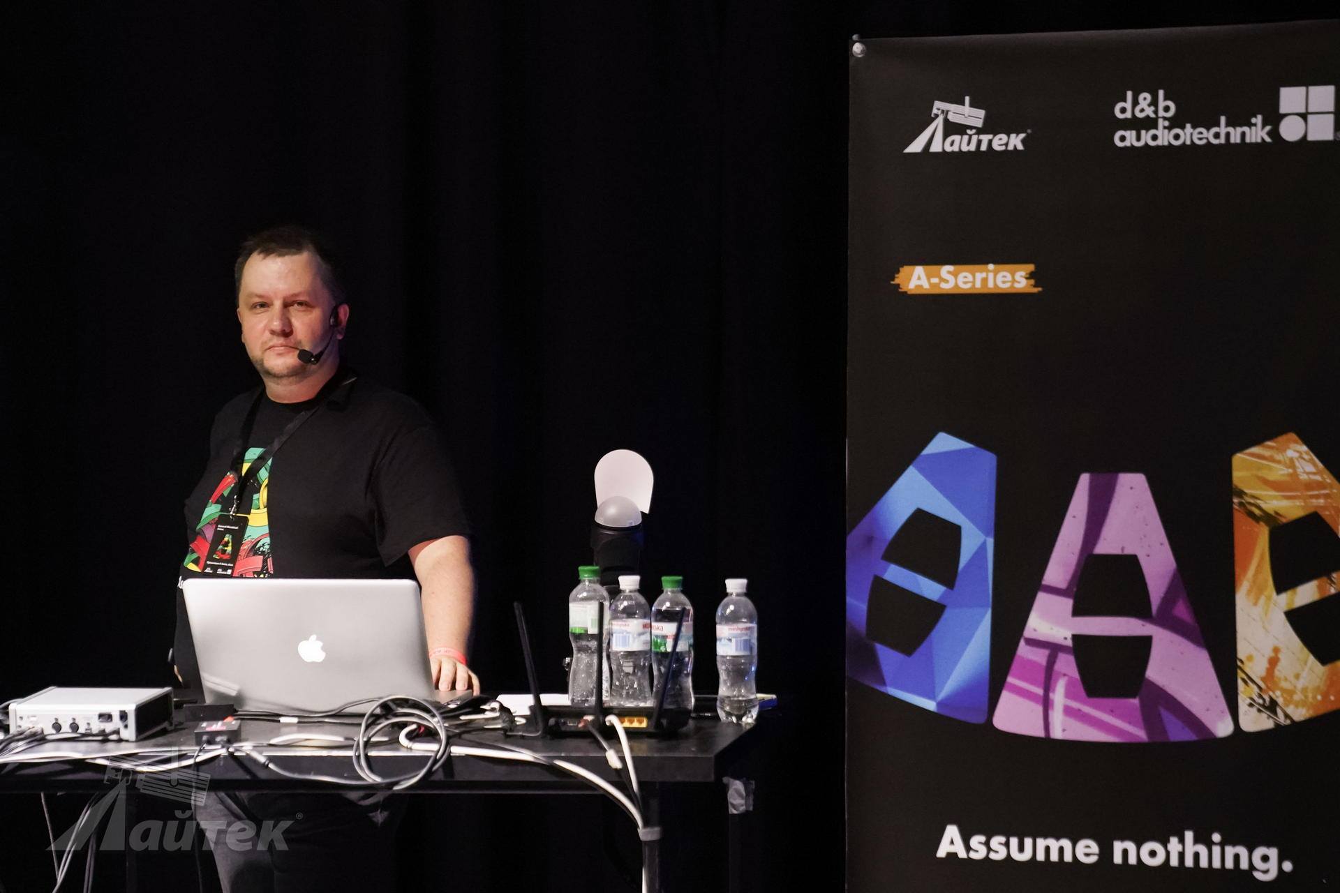 Захід провів ведучий звукоінженер компанії Лайтек – Олексій Малайний. Також виступив і взяв активну участь в презентації його колега – відомий звукорежисер Андрій Цістанов. В рамках презентації відбулася онлайн сесія Q&A (запитань і відповідей) з технічним фахівцем компанії d&b – Джеймсом Річес.