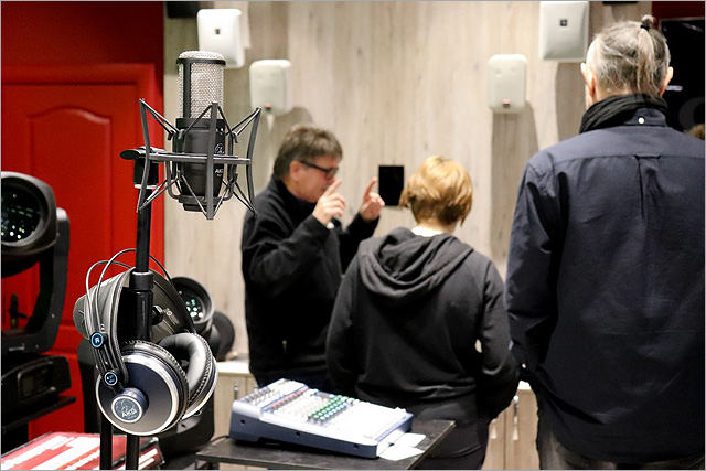 Під час ознайомчої практики студенти засвоїли базові принципи роботи з акустичними системами JBL Professional та мікшерними пультами Soundcraft, а також мікрофонами AKG та Austrian Audio.