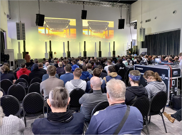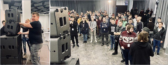 Для «розігріву» відвідувачам запропонували презентацію нових лінійних масивів з фіксованою кривизною серії A – компактних потужних топів A10, A15 та сабвуферів KS21. Проста у використанні, гнучко масштабована система звукопідсилення забезпечує ефективне та рівномірне покриття аудиторій від 50 до 5000 слухачів. Цікаву доповідь провів Пітер Оуен, досвідчений регіональний менеджер з продажів L-Acoustics, після чого відвідувачі почули чисте і потужне звучання цих систем.