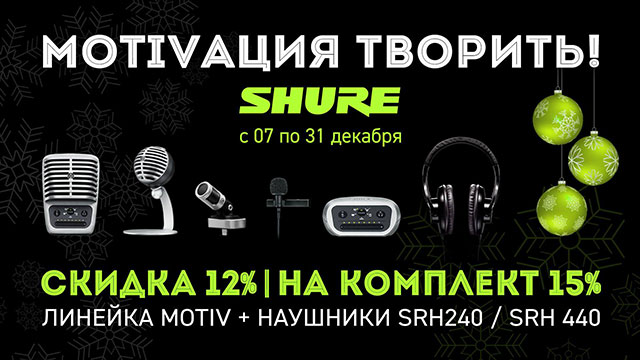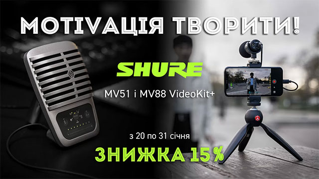 З 20 по 31 січня оголошуємо декаду знижок 15% на моделі для творчості зі споживчої лінійки цифрових мікрофонів Shure: MOTIV MV51 і MV88 VideoKit +.