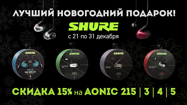 З 21 по 30 грудня діє новорічна знижку в 15% на нову лінійку внутріканальних навушників Shure Aonic, яка була представлена цієї осені і стала найкращою можливістю отримати звук професійної якості кожному бажаючому.