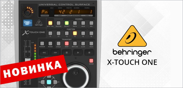 Лінійка універсальних контролерів компанії Behringer поповнилася новинкою — X-TOUCH ONE. Пристрій призначений для управління робочою станцією через протоколи HUI або Mackie. Випущений контролер оснащений сенсорним моторизованим фейдером та поворотним енкодером. Також в ньому є один регулятор і 34 кнопки, LCD дисплей та світлодіодний індикатор.