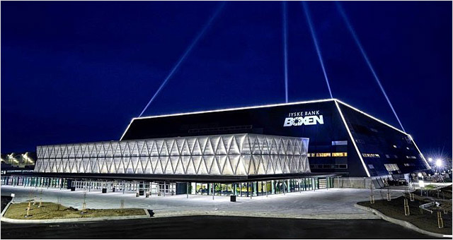 Конструктори мультифункціональної арени Jyske Bank Boxen, що у Гернінгу, Данія, прагнули оживити її ззовні і зсередини. Їм було необхідне рішення архітектурного світла, що поєднувало б високу продуктивність змішування кольорів та підтримку динамічного світлового дизайну.