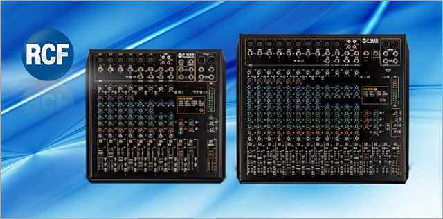 Мікшерні пульти RCF нової серії F спроектовані з урахуванням всього досвіду професійної серії E. Вони забезпечують високоякісний звук в чотирьох форматах від 6 до 16 каналів. Потужний інструмент, детально продуманий і розроблений командою розробників RCF. Він розміщається в міцному металевому корпусі з повністю збалансованим аудіошляхом. Крім того, унікальний процесор DSP FX: 16 професійних ефектів, таких як реверберація, ефект затримки (Mono, Stereo і Multitap), хорус, фленджер, відлуння та інші.